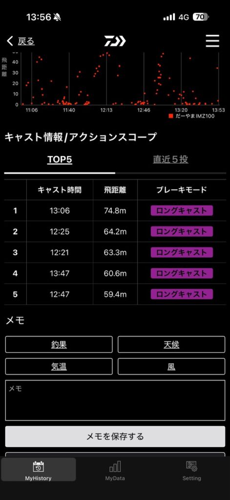 スマホ連携。上述スクショの通り、試しに何度か設定しましたけど。僕は、釣り中にスマホを見ると、仕事の連絡を見て心が萎えてしまうので、リールとスマホを繋ぐってことはまずしません。