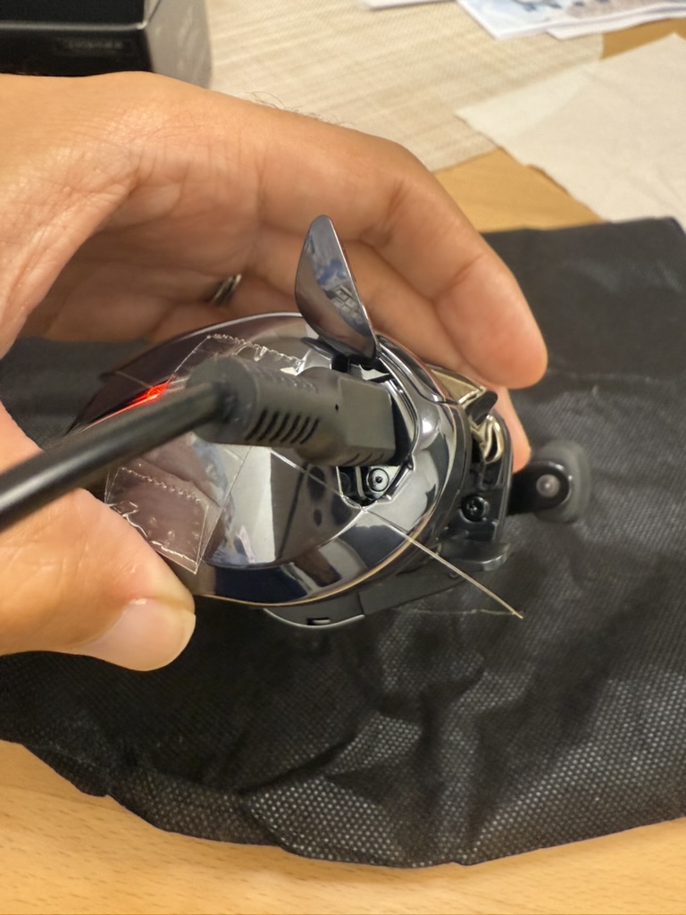 これに尽きるでしょう。自動的にブレーキをかけてくれる夢のベイトリールです。もちろんデジタルブレーキの元祖はシマノのDC。シュイーーンというかっちょいいサウンドと共にしっかりとスプールを制御してくれるアレです。しかし、あれは自家発電式。こいつは充電という少しばかり面倒なことをする必要はありますが、その電源を使って、より細かにブレーキを効かせてくれるというワケです。