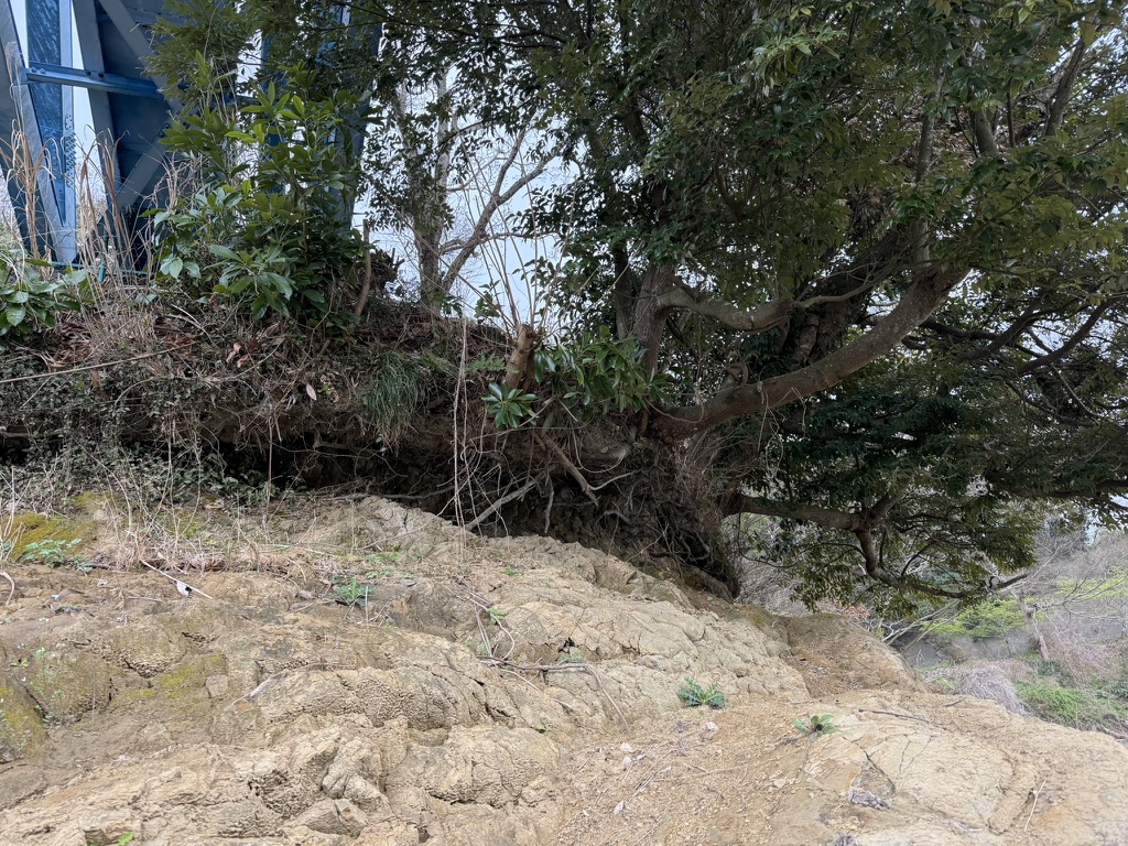 木のねもとを見てみてください。えぐれてませんか?ここが水に満ちたら、絶好の隠れ家ですよね。虫が落ちてくるかも知れないし、岸際を泳ぐ魚に襲い掛かることもできます。おまけにどんどん深くなっているので、環境が変わったらすぐに深場に落ちることもできます。