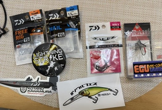 これ、めっっちゃくちゃ申し訳なくなりました。釣りフェスって入場費用取られるけど、貰えるものってそんなにないです。しかし、僕はウエイインの直前についたのにも関わらず、フックとかシンカーとかステッカーとか結構実用的なものをいただきました。