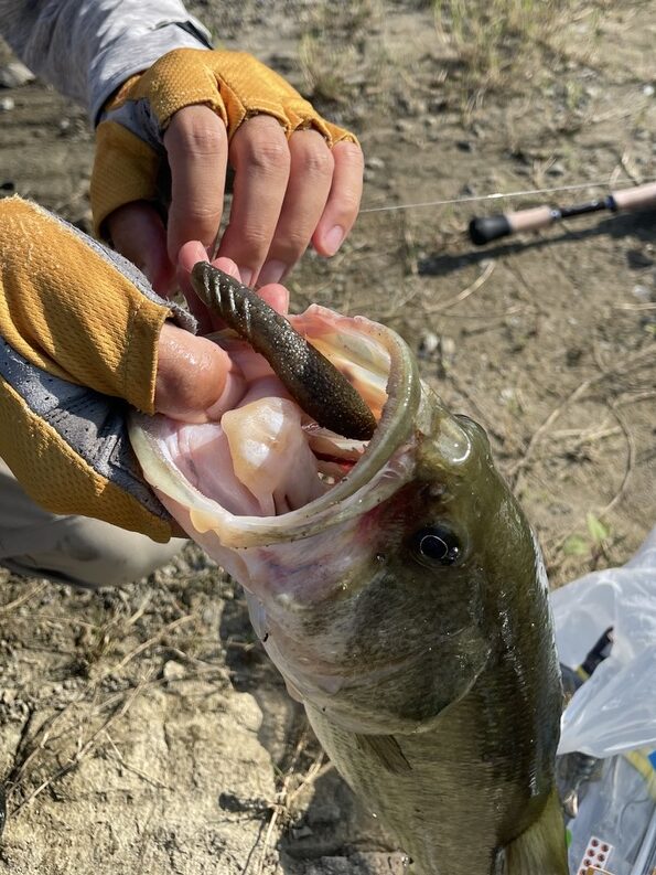 ノーシンカーでカバーに突っ込んで、水平姿勢で誘うワームでした(過去形なのは後ほど)。