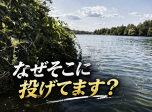 岸際なり、沖なりの狙いたいところにカバースキャットを投げます。ちなみに僕が釣れたポイントの一部はこんな感じです。