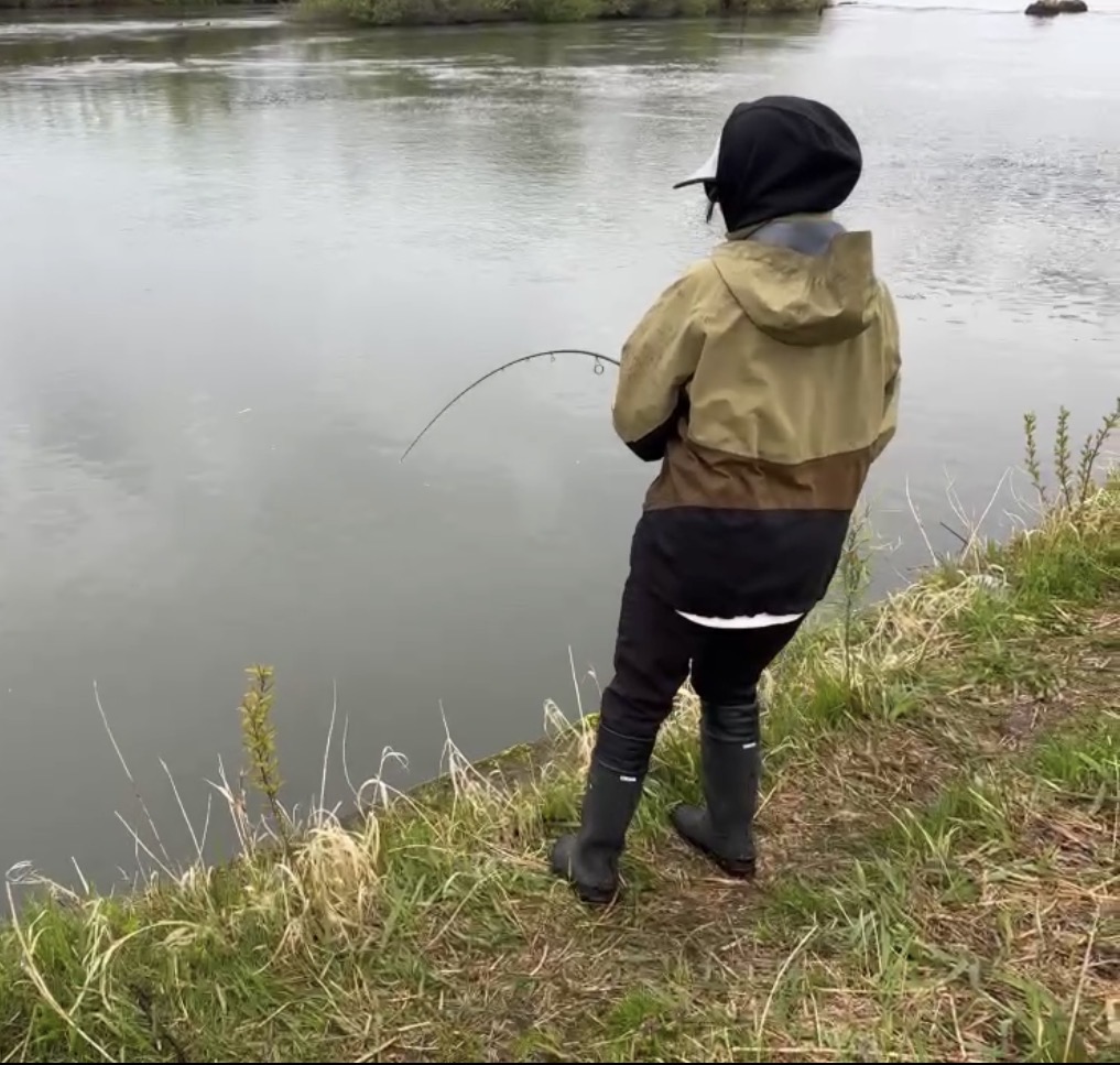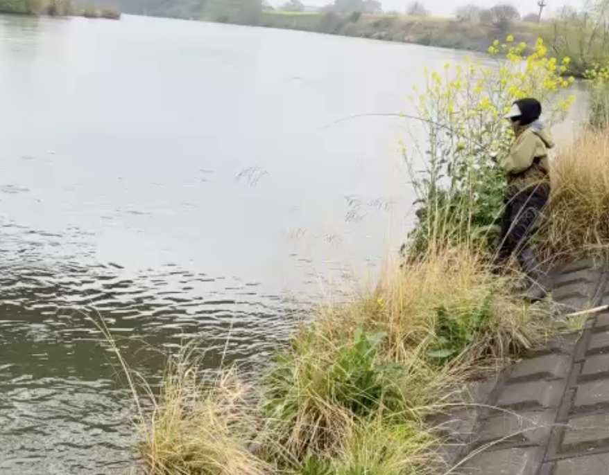 流れが復活した分、ラインとルアーが流されるため根掛かりすごいし、雨で斜め護岸が滑るので危ないですね。滑らない土の上から、投げては根掛かり、を繰り返して過ごします。