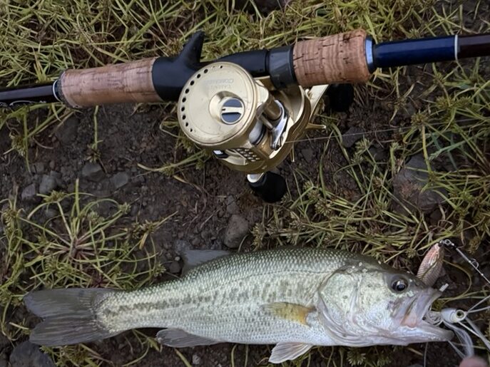 このリザーバー、一時期をぬいて、シャローにギルやベイトがうろついていることは、このブログで幾度も書いてきました。そして、うちの嫁がリリースした子バスを別のバスが食いにきた、みたいなこともありました。