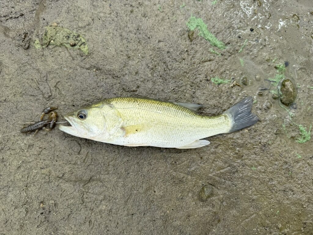 ハードボトム上だと嫁もササタケ君も良い型だったそう・・・ハードボトムより少し外れたのっぺりなところになってしまうと、こんなサイズが来てしまいます。