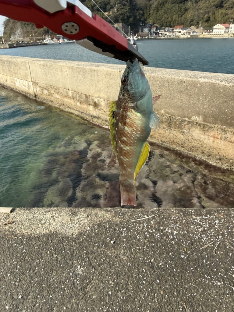 到着早々に漁港内でファイトしているアングラーさん発見、声をかけてみると写真撮らせてくれました!