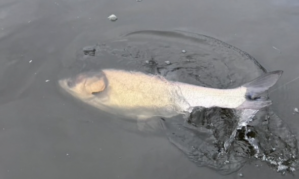 これ、いつも釣ってるボラじゃねぇ・・・・コイ!?コイとも何か違う気がする・・・